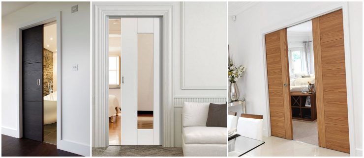 Pojedyncze lub podwójne drzwi kieszeniowe po otwarciu chowają się w ścianę, przesuwając się po rolkach zawieszonych na górnej prowadnicy. Dzięki zastosowaniu kasety w ścianie, w której chowają się skrzydła, można zaoszczędzić miejsce, ponadto są to drzwi bezpieczne, a w czasie przeciągu ryzyko trzaskania drzwiami nie istnieje. Ten system najlepiej zaplanować jeszcze na etapie budowy (lub przebudowy) ścian wewnętrznych, w których musi zostać przewidziana kaseta konstrukcyjna, a na tym fragmencie ściany nie mogą być obecne przewody hydrauliczne i elektryczne.